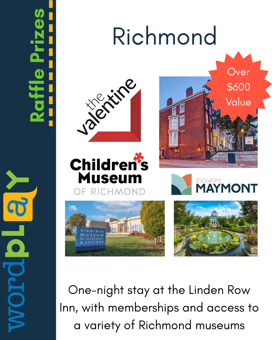 One-night complimentary stay at the Linden Row Inn, one-year Maymont Family Membership for two adults and up to four children, four member for a day passes at the Lewis Ginter Botanical Garden, four admission passes at the Children's Museum of Richmond, one-year household-level membership at the Virginia Museum of History and Culture, and a $100 household membership card to the Valentine Museum.