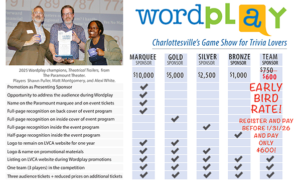 (Sponsors above the $2500 level, please contact the LVCA office 434-977-3838 to pay.)